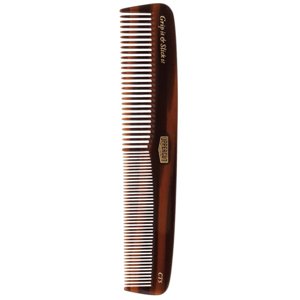 Uppercut CT5 Tortoise Shell Comb von Uppercut Deluxe ist ein Stylingkamm mit zwei unterschiedlichen Zahnweiten. Der Kamm ist aus strapazierfähigem Kunststoff gefertigt.