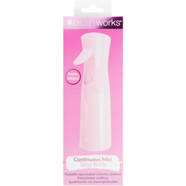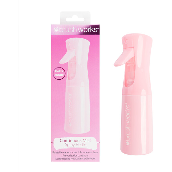 Brushworks Continuous Mist Spray Bottle ist eine praktische Sprühflasche für Haarstyling, die einen gleichmäßigen und feinen Nebel erzeugt. Sie ist perfekt, um das Haar zu befeuchten, Frisuren zu stylen oder das Haar zwischen den Wäschen aufzufrischen. Die kontinuierliche Sprühfunktion sorgt dafür, dass das Wasser gleichmäßig über das Haar verteilt wird, was beim Styling ein professionelleres Ergebnis liefert.