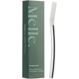 Melle. Dermaplane Razor - Gesichtsrasierer ist ein superscharfes, einseitiges Rasiermesser, das sanft selbst die feinsten Gesichtshaare entfernt, die Konturen glättet und die Augenbrauen formt.