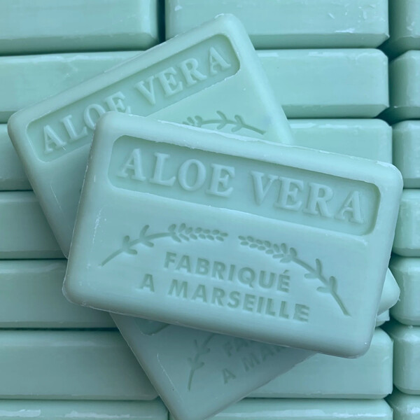 Handgemachte französische Naturseife aus Marseille mit einem frischen Duft von Aloe Vera.