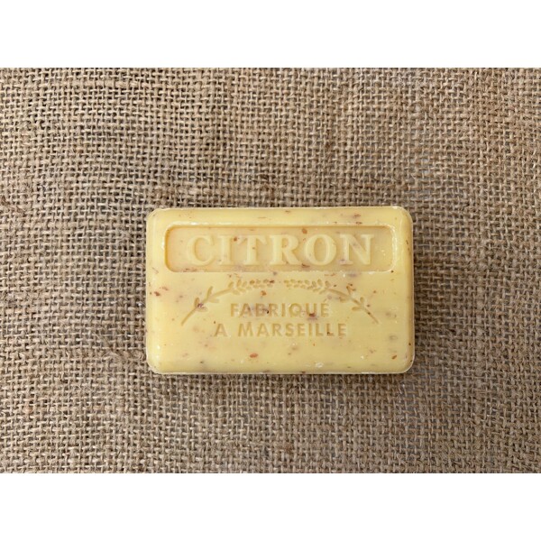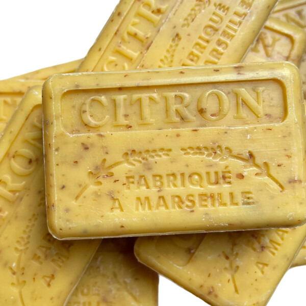 sodium palmate, sodium palm kernelate, aqua (water), parfum (fragrance), palm kernel acid, triticum vulgare (wheat) bran, citrus aurantium dulcis, sodium chloride, glycerin, butyrospermum parkii (shea) butter*, tetrasodium EDTA, tetrasodium etidronate, limonene, citral, CI 11680, CI 12085 *Produit issue de l'agriculture biologique
