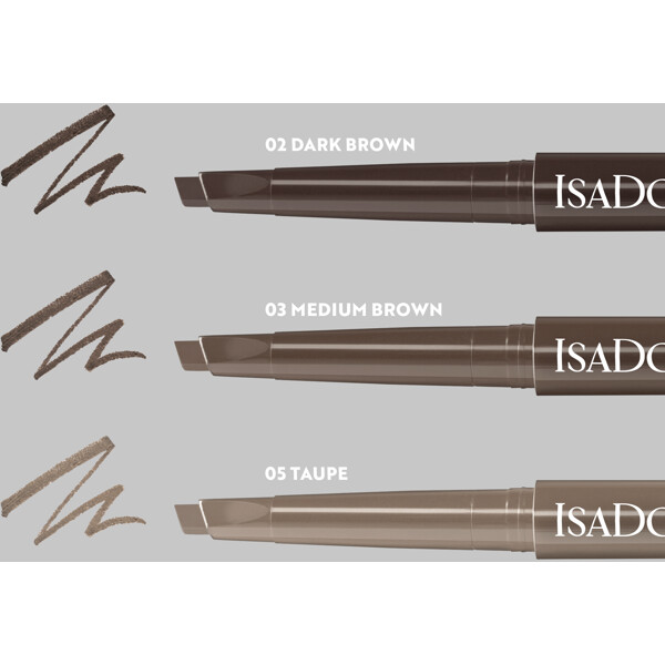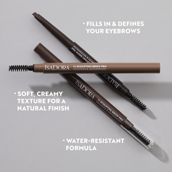 IsaDora Sculpting Brow Pen Waterproof ermöglicht sowohl breites als auch feines Augenbrauenstyling. Der Sculpting Brow Pen verfügt über eine einzigartige, flache und schräg abgeschrägte dreieckige Applikatorspitze - ideal für sowohl breites als auch feines Augenbrauenstyling. Sehr einfache Anwendung, formt und füllt die Augenbrauen in einem einzigen Strich auf. Unparfümiert Klinisch getestet