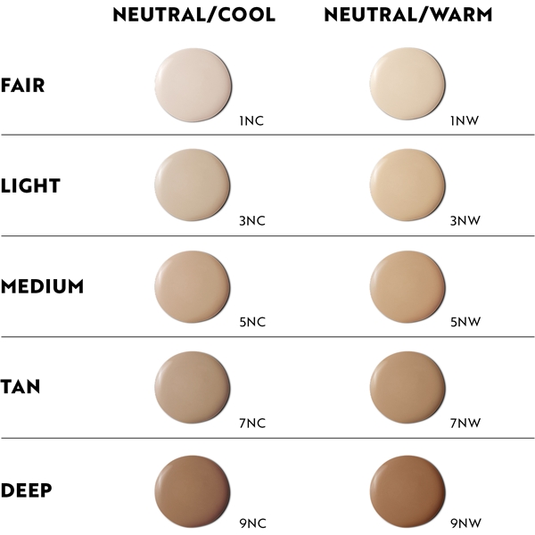 Erhältlich in 10 inklusiven Nuancen mit kühlen, warmen und neutralen Untertönen.