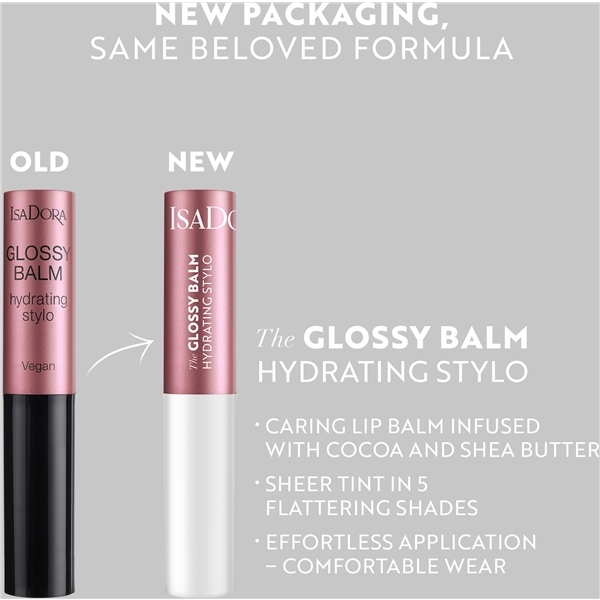 IsaDora Glossy Balm Hydrating Stylo ist ein feuchtigkeitsspendender, cremiger Lippenbalsam, der Ihre Lippen mit transparenter Farbe und Glanz pflegt.