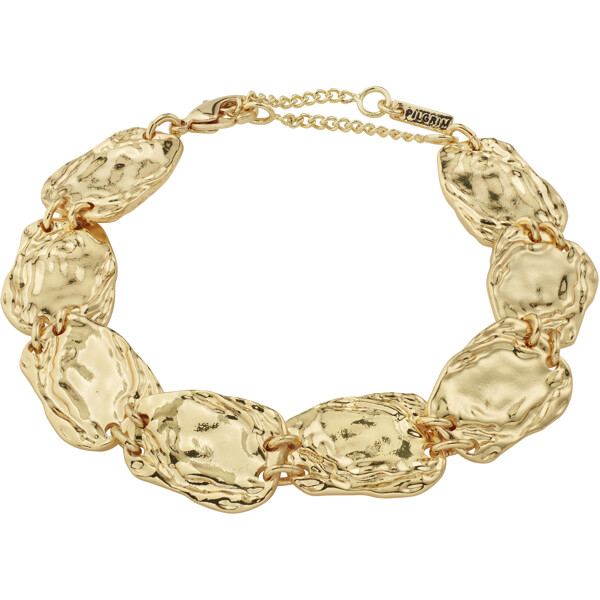 Das vergoldete SHIFT-Armband von Pilgrim ist ein Muss für alle, die einzigartige Accessoires mit Charakter lieben. Die flachen, organisch geformten Münzen haben eine raue, strukturierte Oberfläche, die dem Schmuckstück ein cooles, handgefertigtes Gefühl verleiht. Eine perfekte Kombination aus Boho-Eleganz und klassischem Stil.