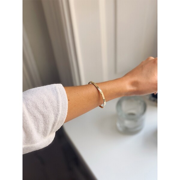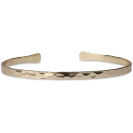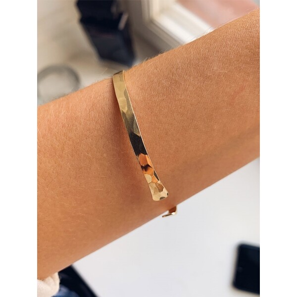 Ein handgefertigtes, vergoldetes starres Armband, das handgehämmert wurde, um ein schönes Muster auf der Oberseite zu erzeugen. Das Armband kann gebogen werden, damit es perfekt passt.