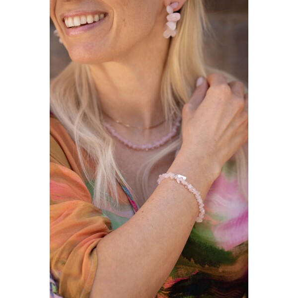 Ein schönes elastisches Armband mit kleinen rosa Rosenquarzsteinen. Dem Rosenquarz wird nachgesagt, Liebesenergie und ein Gefühl des Wohlbefindens zu vermitteln. Er kann sowohl Liebe anziehen, die Liebe stärken als auch Liebeskummer lindern. Außerdem soll er Stress lindern und dämpfen.