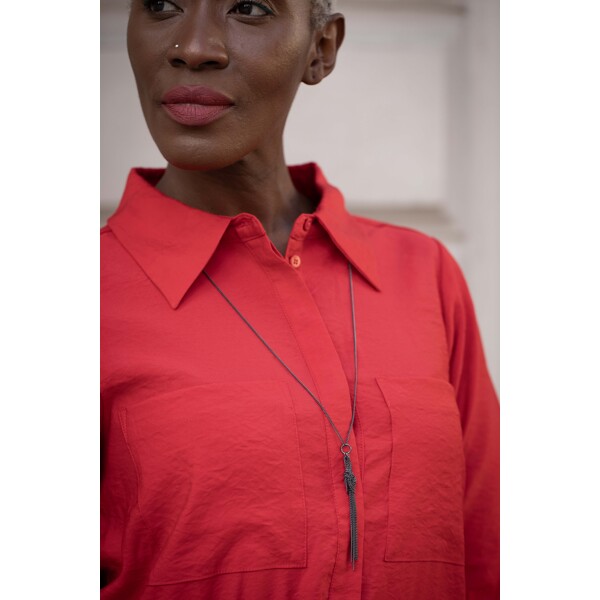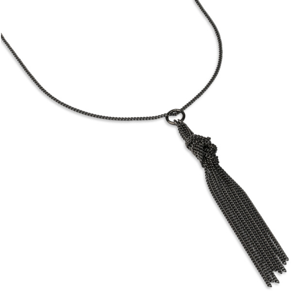 Gunmetal-platierte Halskette mit einem Anhänger, der aus vielen kleinen Ketten besteht und oben einen Knoten hat.
