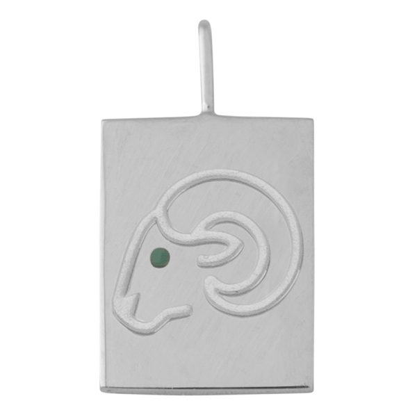 Zodiac by Design Letters Aries ist ein Anhänger für diejenigen, die im Sternzeichen Widder geboren wurden. Der Anhänger ist aus 925 Sterlingsilber und 18 Karat vergoldetem Silber erhältlich. Die Vorderseite des Anhängers zeigt ein Bild des Widders und auf der Rückseite steht "COURAGE", was den Widder symbolisiert.