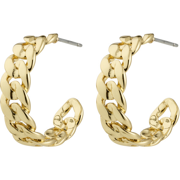Die MAYER-Ohrringe von Pilgrim sind die perfekte Mischung aus roher Attitüde und edlen Vibes. Das ikonische Curb-Chain-Design setzt ein kraftvolles Statement zu deinem Look, während das vergoldete Finish ein exklusives Gefühl verleiht.