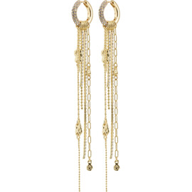 Die vergoldeten DRUE-Ohrringe von Pilgrim sind die ultimative Wahl, wenn du deinem Look einen Hauch von einfacher Eleganz verleihen möchtest. Die kleinen Creolen mit Preciosa-Kristallen verschmelzen mit einem Wasserfall aus Ketten und feinen Anhängern, die einen verspielten, unbeschwerten Ausdruck mit einem luftigen Gefühl schaffen.