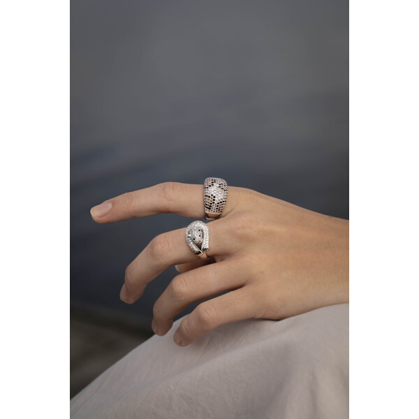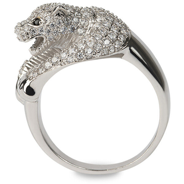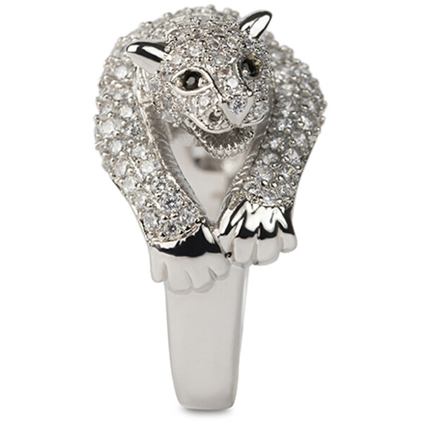 Versilberter Leopardenring, der mit funkelnden, von Hand gefassten Cubic-Zirkonia-Steinen gefüllt ist.